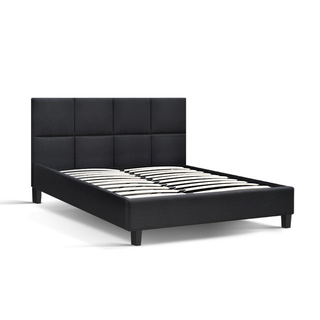204 X 144cm Artiss TINO Double Size Bed Frame Base Fabric Headboard Wooden Mattress Easy Assembly Bed Charcoal Home Furniture A2